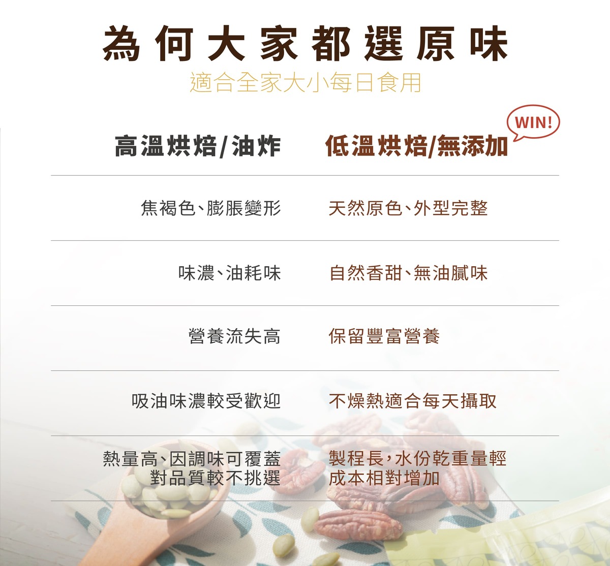 - 過敏原資訊:本產品含堅果類製品,此生產線也加工芝麻類的商品。
