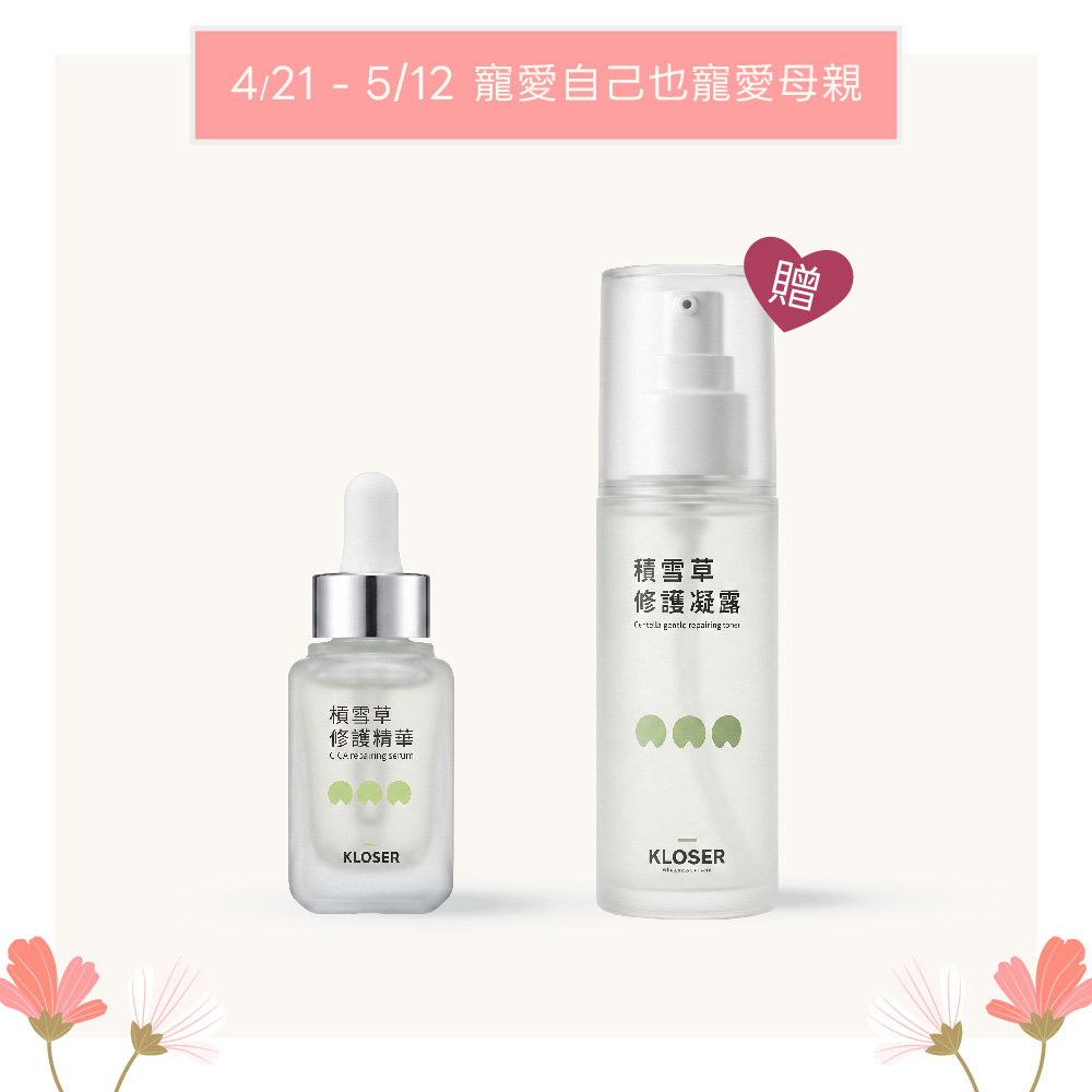 【母親節優惠】KLOSER靠近 積雪草修護精華液30ml 買1送1(贈品:積雪草修護前導液100ml)