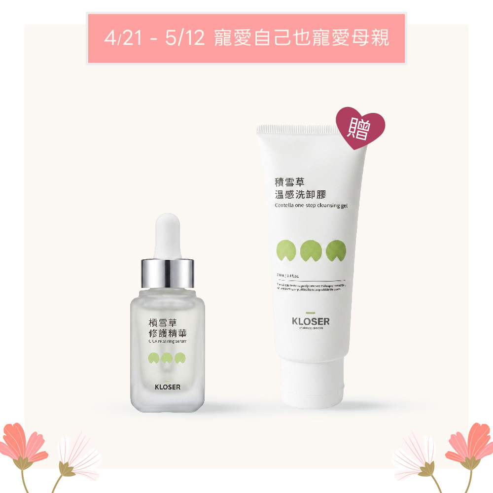 【母親節優惠】KLOSER靠近 積雪草修護精華液30ml 買1送1(贈品:積雪草溫感洗卸膠100ml)