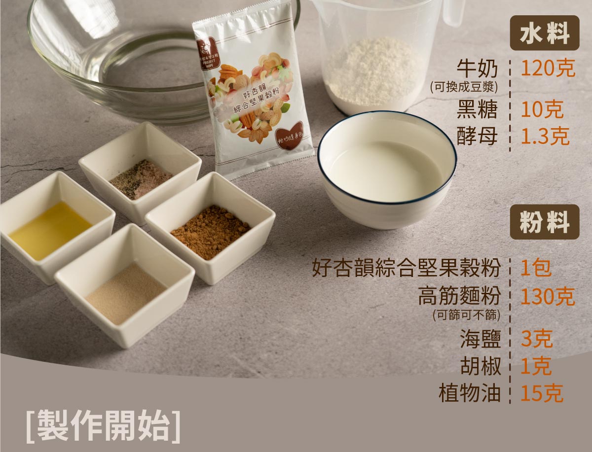 只要用香氣濃郁的堅果穀粉做為基底,再加些點綴鹹味的胡椒,