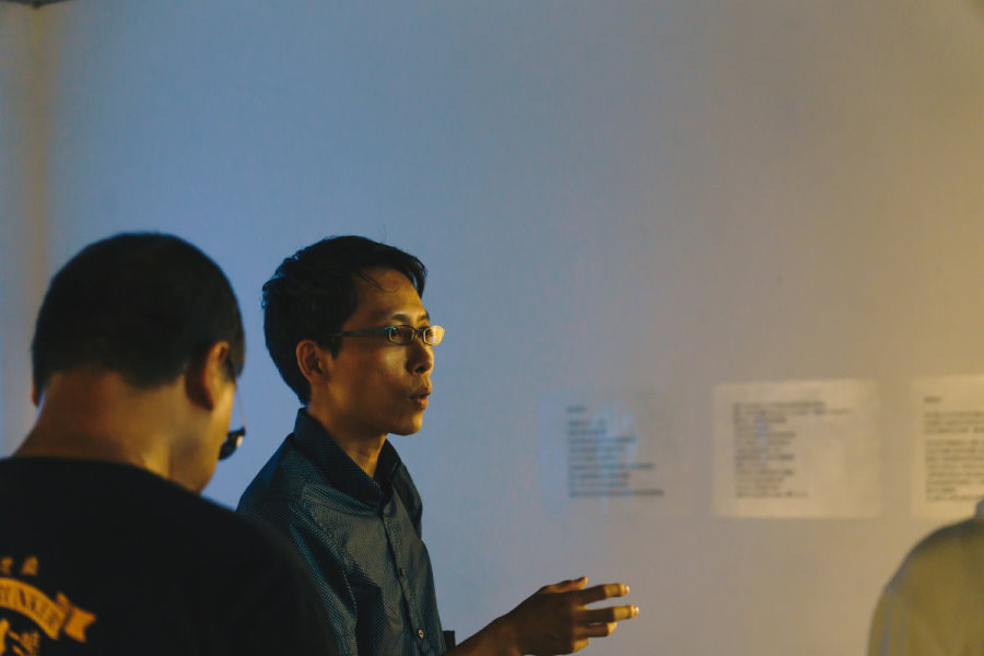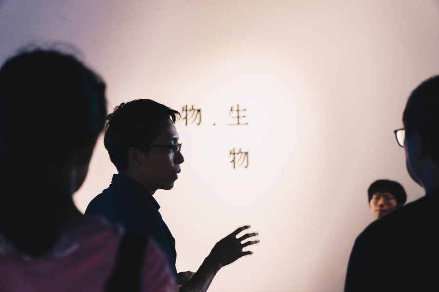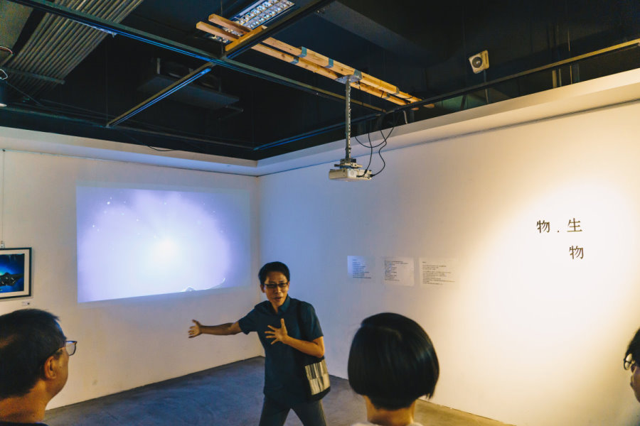 二樓的藝文空間舉辦的展覽,偶爾會有藝術家現場導覽的活動,圖中為這次展覽「物.生物」的藝術家——張溥騰老師。