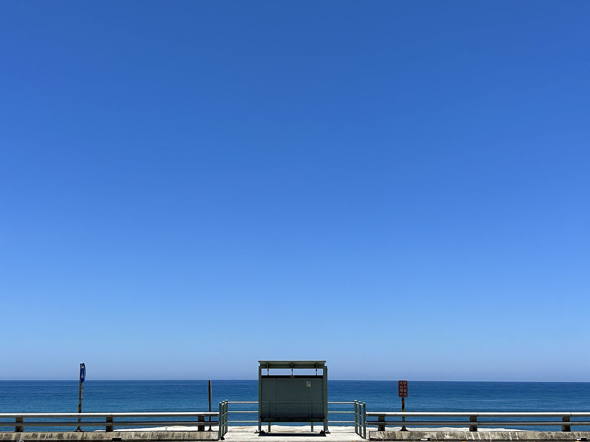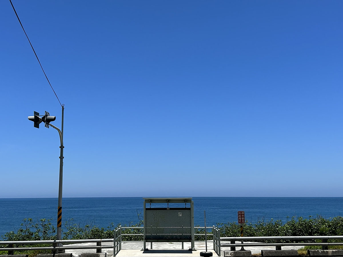 去年暑假興建好的多良公車亭,包攬了大片藍天與蔚藍的海岸線。