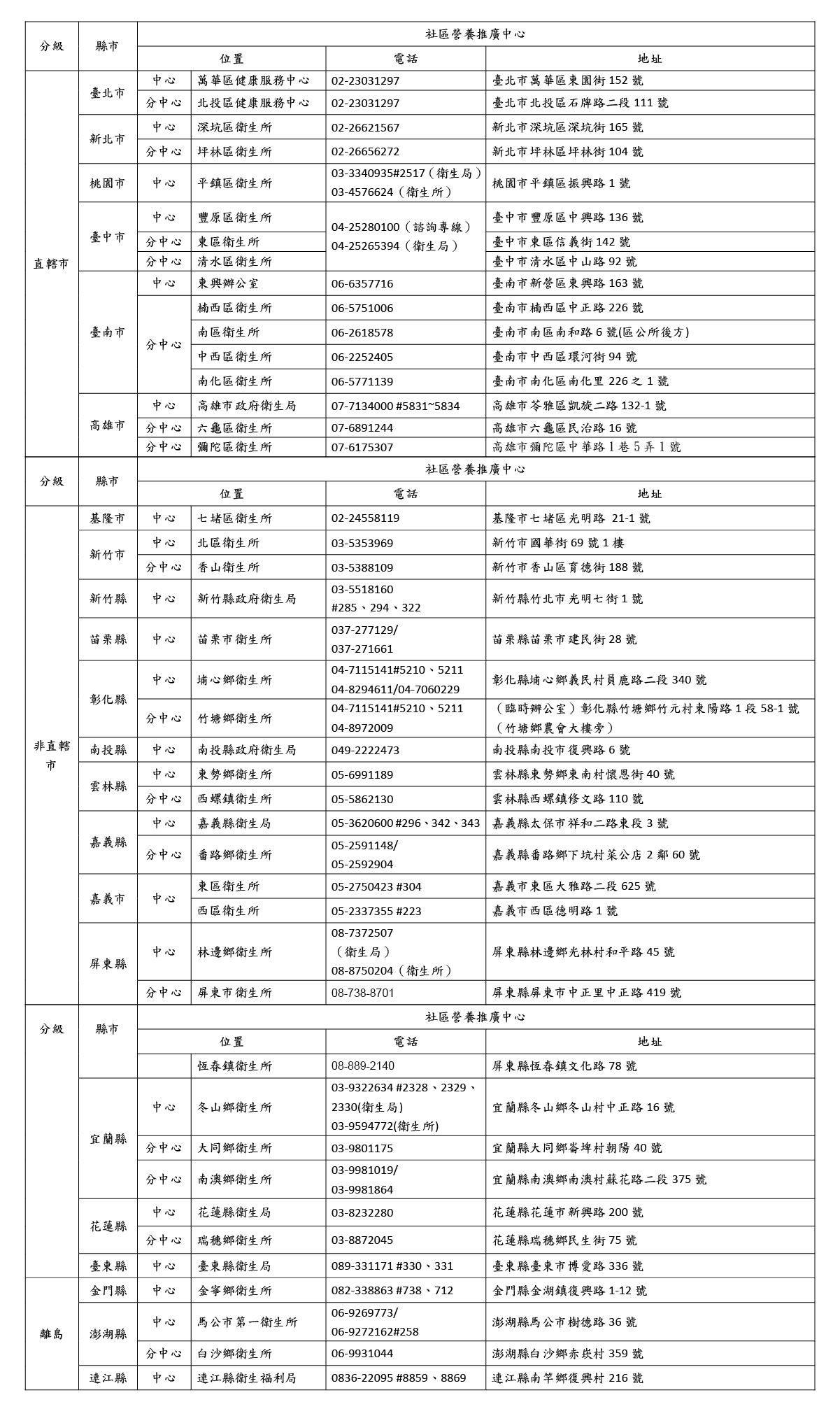 全台「社區營養推廣中心」簡介及聯絡資訊
