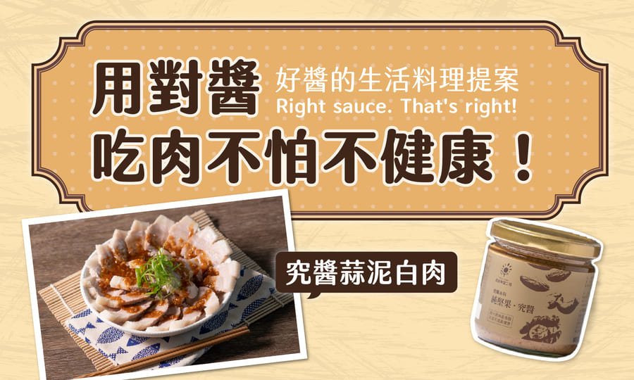 堅果的香醇甘甜、細緻顆粒,增加了不同層次的香氣口感,醬油的鹹度被溫柔的中和,與白肉一起吃口感豐富,