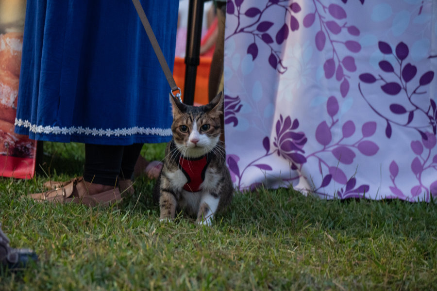 許多寵物也跟著主人來參加「巴西瓦里」的派對,草地上的小貓咪看起來有點怕生,是乎對於