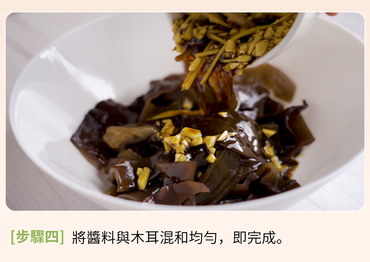 換成甜味較少的青仁黑豆醬油,木耳味道鹹脆酸香剛剛好!