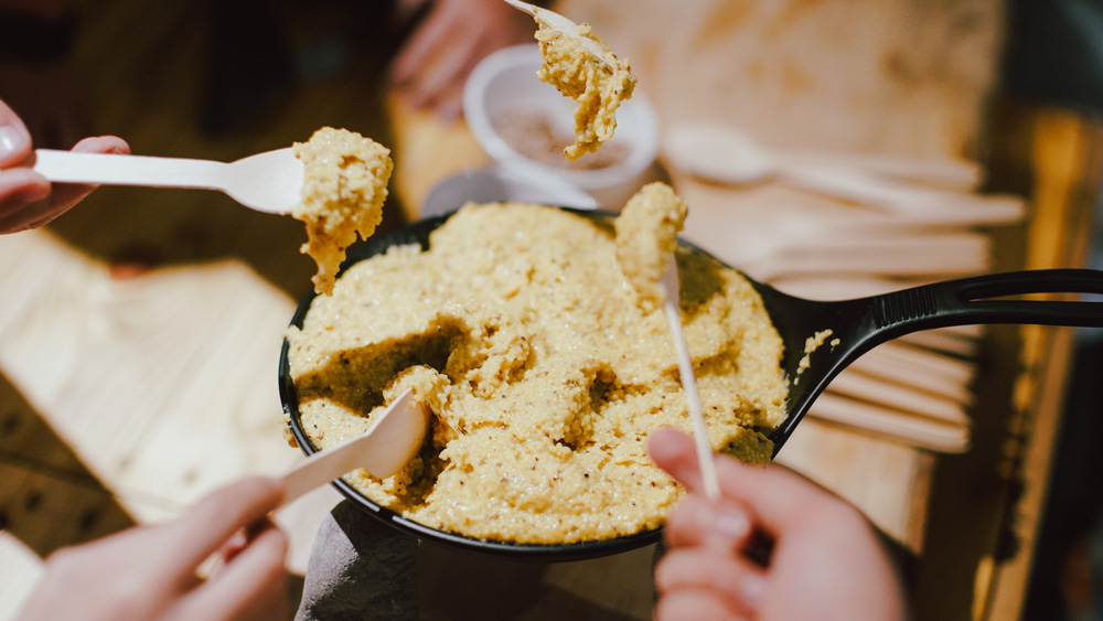 狩獵後回到部落,享受烤豬大餐和這裡獨有的油芒創意料理。
