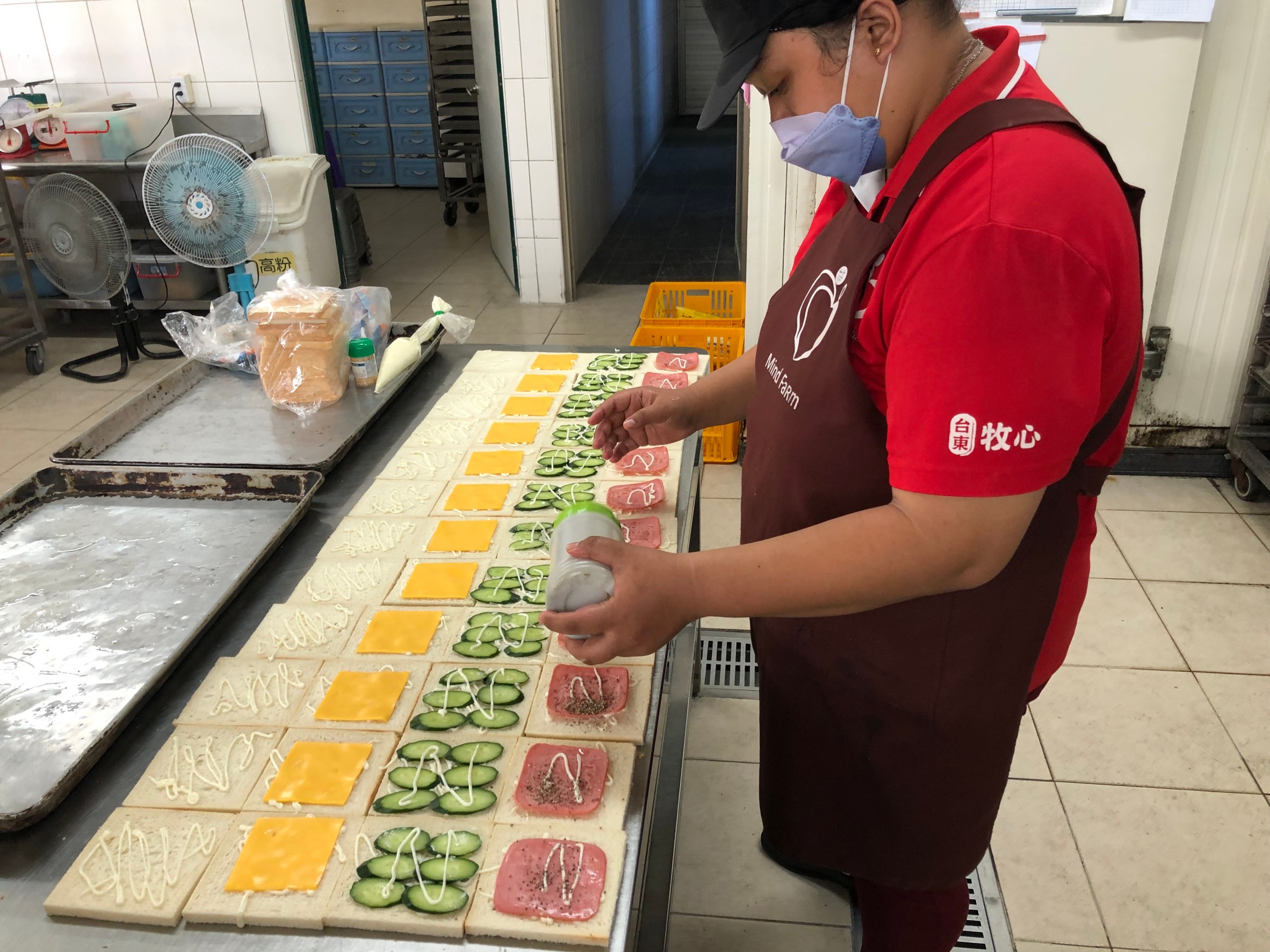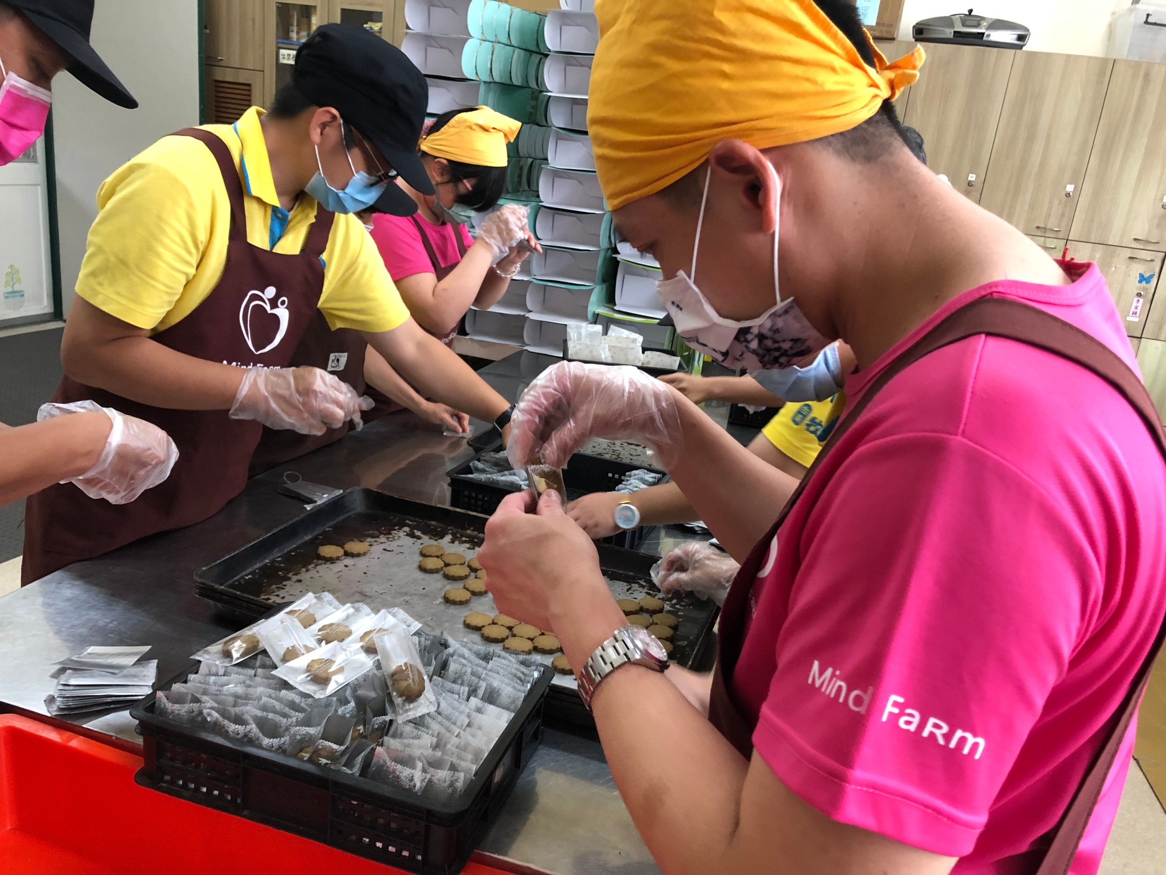人員跟我們介紹說烘焙坊分成三個部門,烘焙包裝以及門市,孩子們會分別分配到適合他們的部門,所有的麵包糕點都是師傅帶著孩子們一起共同完成的