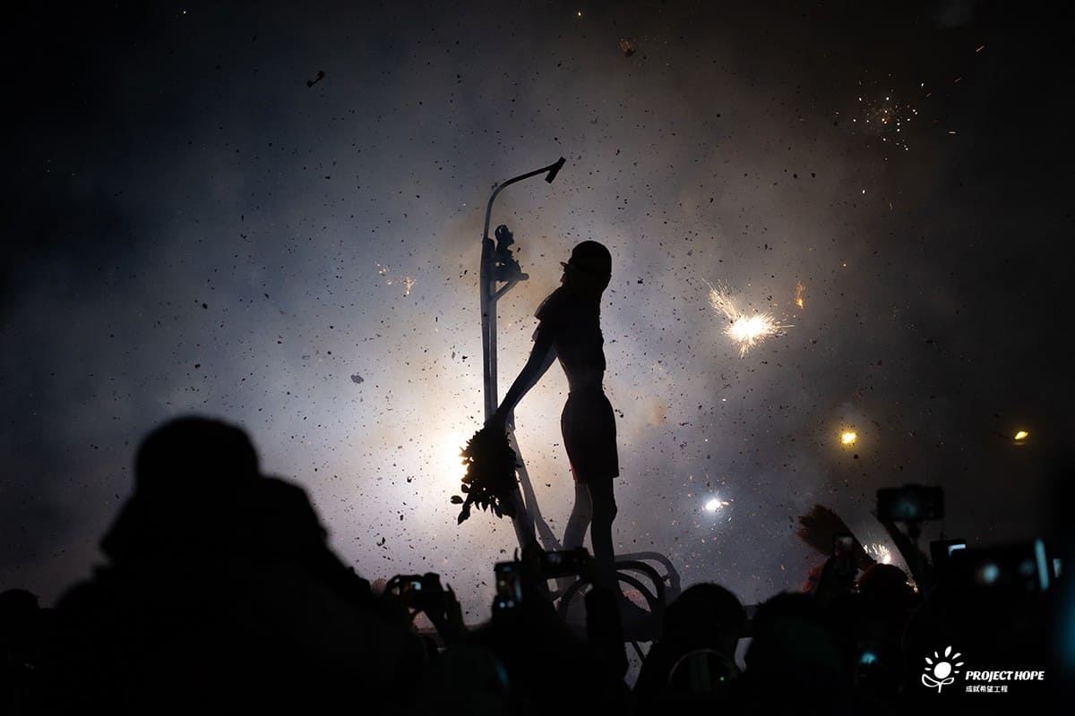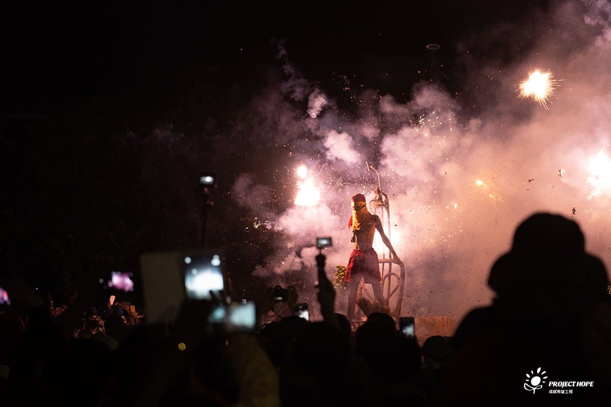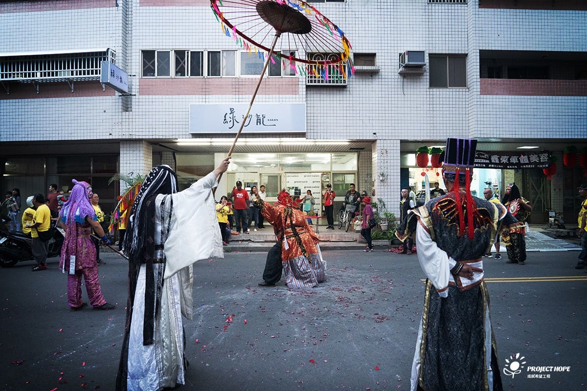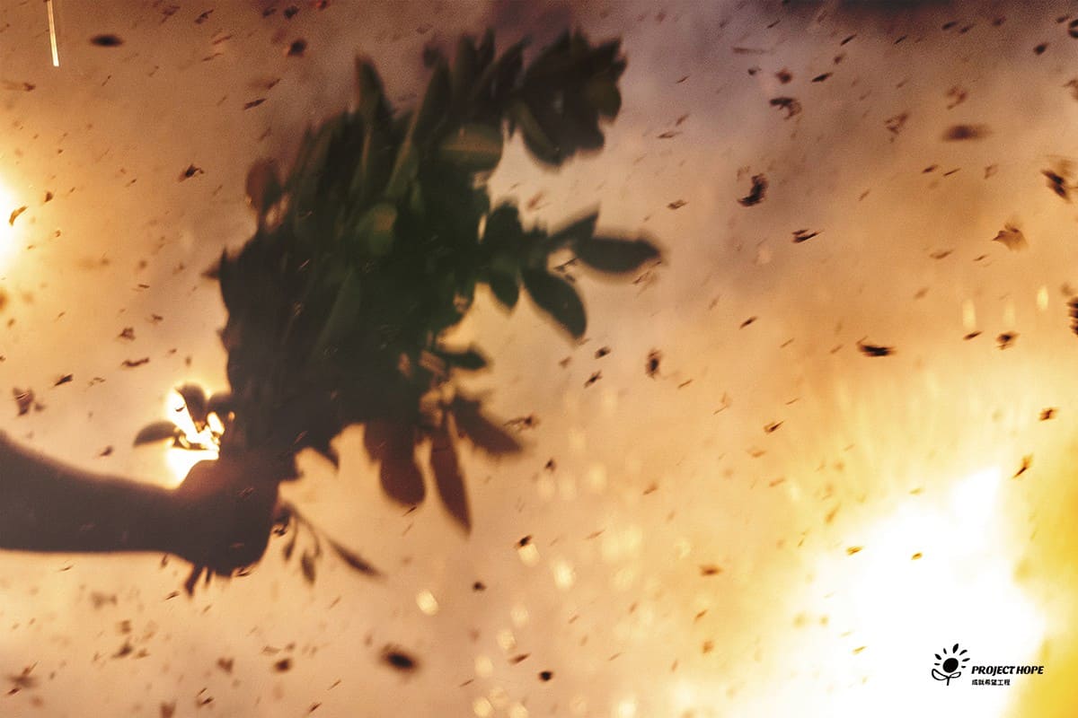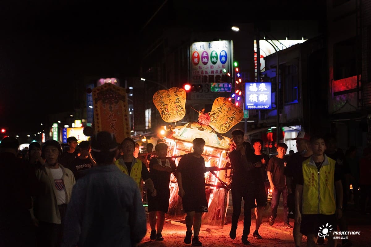 一串光劃過神轎旁,發出劈哩啪啦的巨響,且還要注意不要傷到肉身寒單,以上的配合,成就這場聲光效果震撼的民俗表演。