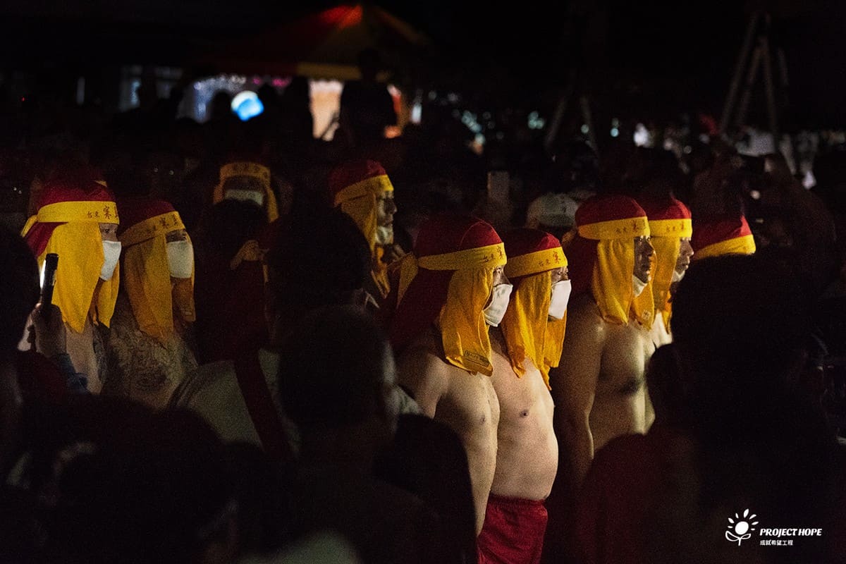 等待上陣的肉身寒單爺,平均每場活動需要動員到3~8名肉身寒單爺,表演時間內會有不同的肉身寒單爺上轎轟炸。
