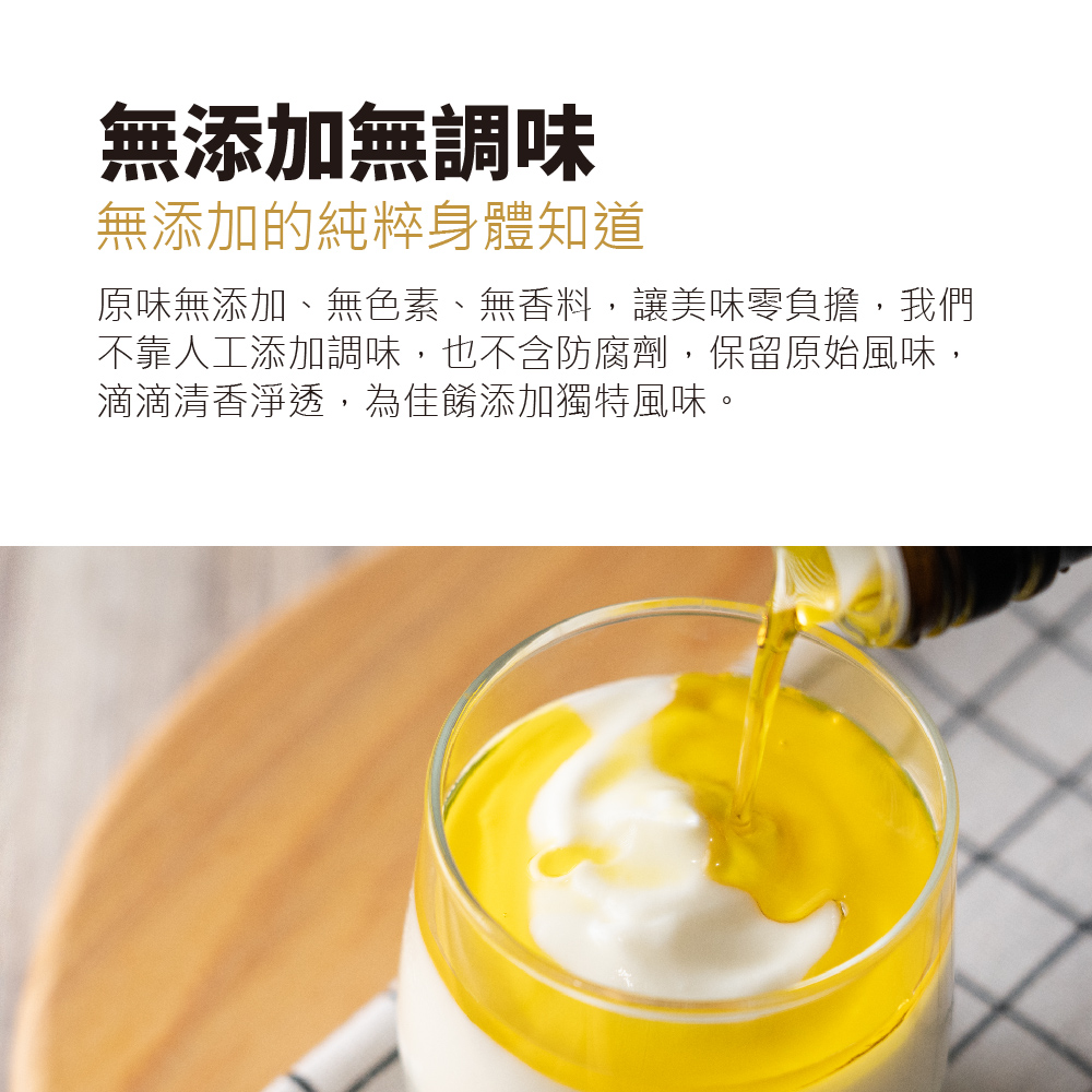- 僅取第一道初榨油,滴滴精華 – 天然純淨,香氣濃郁、口感滑順不嗆喉。