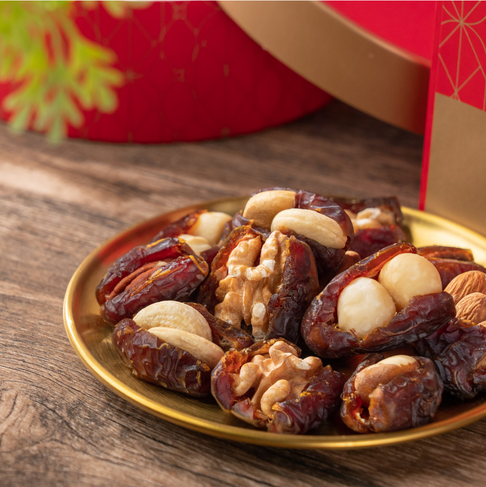 - 成份:椰棗(伊朗)、扁桃仁/杏仁(美國加州)、腰果(越南)、核桃(美國加州)、碧根果(美國)、夏威夷果(澳洲、南非)