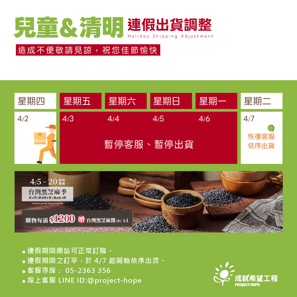 📦 出貨暫停期間|4/3(五)-4/6(一) 期間暫停出貨、暫停客服,官網可正常下單。