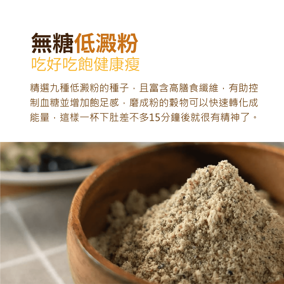 - 嚴選9種低澱粉穀物,富含植物性蛋白。