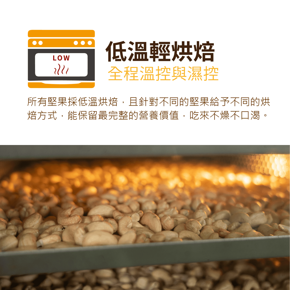 - 低溫烘焙,保留食材原始香甜與營養價值。