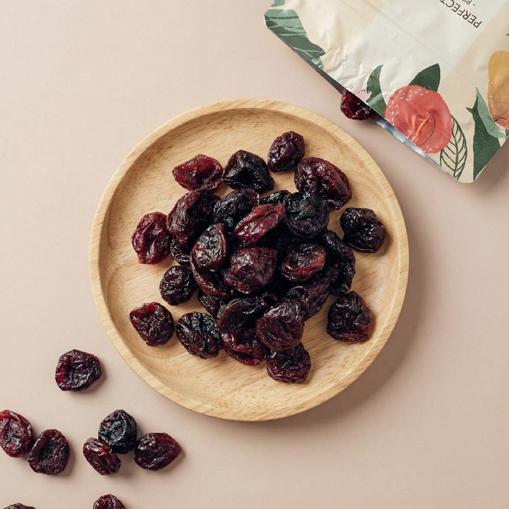 A:因為我們的櫻桃乾不添加護色劑,也不做硫化處理。 新鮮櫻桃在低溫長時間烘乾的過程中,果糖自然濃縮,加上櫻桃本身富含的花青素會隨時間與空氣產生氧化,顏色便會逐漸轉為深紅至深黑色 這樣的色澤,正是果實經過乾燥後的天然原色,而不是透過護色或加工刻意留下的亮紅外觀。