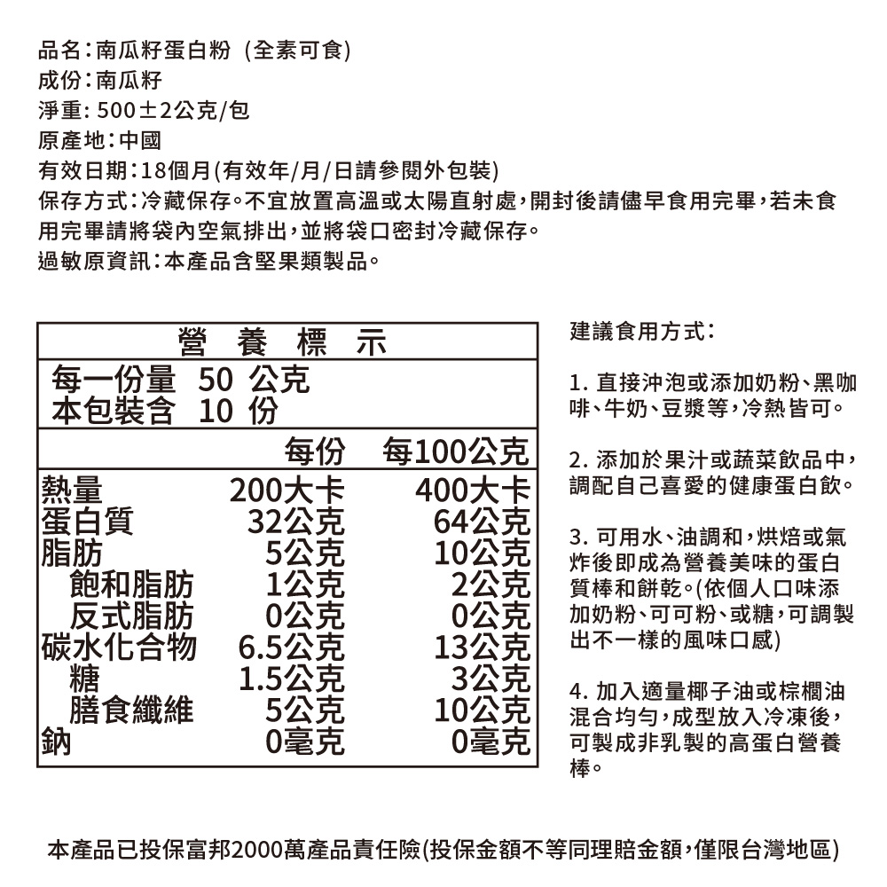 純南瓜籽蛋白粉 500g | 無調味、零添加、高蛋白