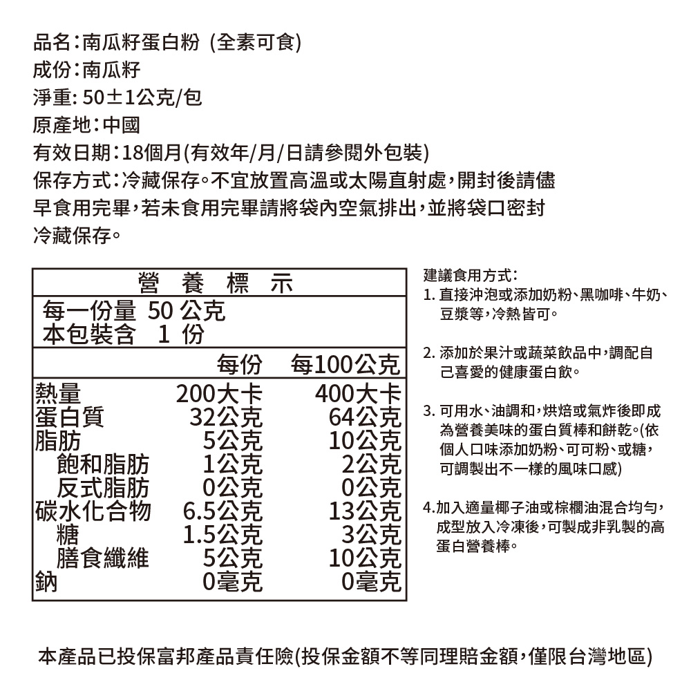 純南瓜籽蛋白粉 50g 體驗包 | 無調味、零添加、高蛋白